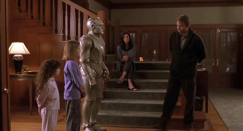 이 영화는 ‘미세한 감정 표현’을 위해 로빈 윌리엄스가 특수 메이크업과 메카닉 의상을 직접 착용하고 연기한 것으로 유명합니다. 그의 로봇 연기는 기계적이면서도 점차 인간적인 온기를 띠는 이중성을 섬세하게 표현해냈습니다. 감독 크리스 콜럼버스는 《해리포터》 시리즈 이전에 이 작품을 통해 미래와 인간성을 주제로 한 감성적인 SF 드라마에 도전했으며, 원작 소설의 철학적인 깊이를 유지하는 동시에 대중성을 고려한 연출을 선보였습니다. 당시 기술로는 드문 고급 CGI와 아날로그 특수효과를 혼합해 사용한 점도 인상적입니다.